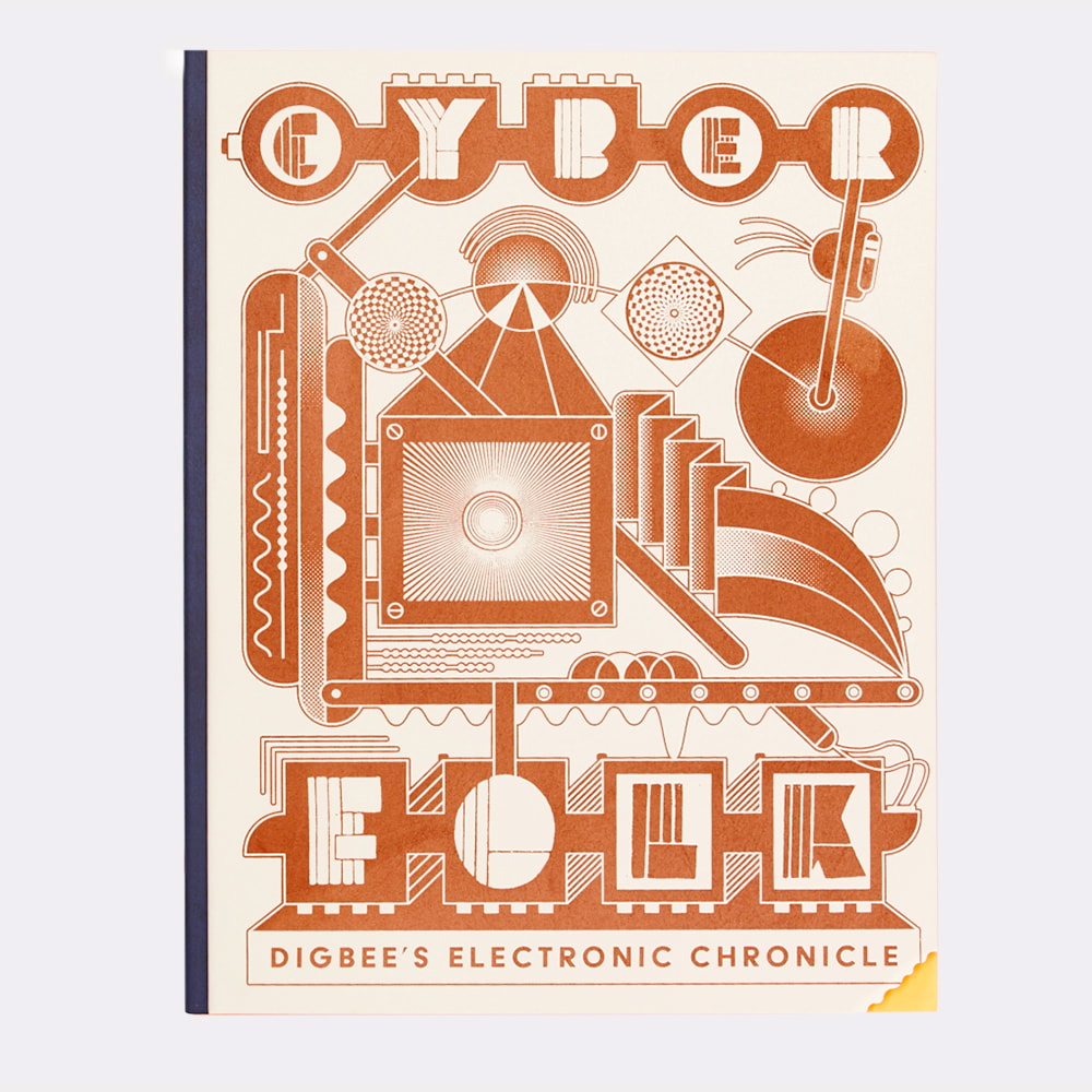 "Cyber Folk: Digbee’s Electronic Chronicle gives a thorough look into a unique, highly personal approach to musical electronic instrument building, an approach that is many things: naïve, enthusiastic, sincere, alien, and familiar. This strange future/primitive work journal contains the release of tons of data, beautiful photos, schematics, building techniques, and the inside stories behind many of Digbee’s most beloved instruments.